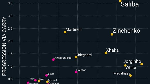 А ось Зінченко показав тут клас. Програвши першу дуель, згодом не залишив суперникам ні шансу, знявши весь верх (4 повітряні єдиноборства) і видавши 2 перехоплення. Крім цього, українця у просуванні м'яча ривками перевершив лише Саліба. За гостротою передач Олекс став третім в обох командах (0,16 xThreat). А в просуванні через пас Зіна поступився Жоржінью, Вайту, Габріелу і тому ж французькому центрбекові. Гостротою віяло і від його відкривань. Як отримувач пасів, який збільшує імовірність забити, український універсал замкнув топ-7.
