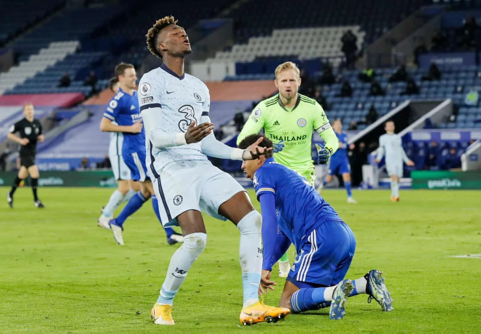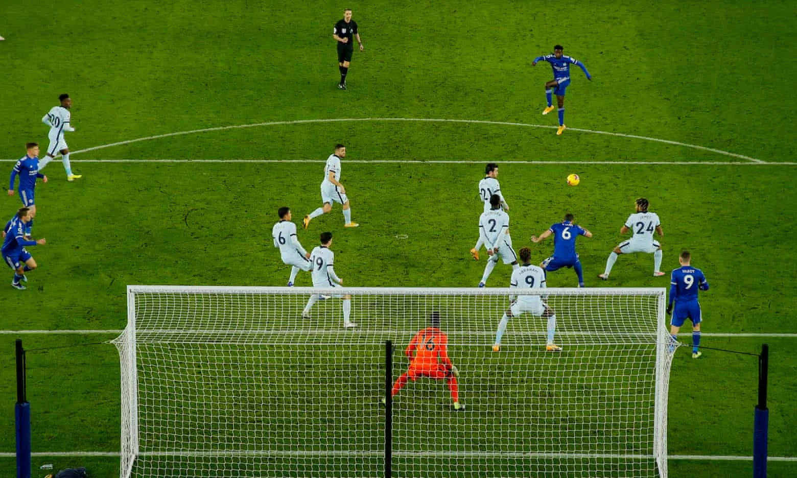 Лестер же на 55-й хвилині розкатав класну комбінацію з точним ударом Олбрайтона у лівий нижній – бути б 3:0, якби Марк не потрапив у офсайд. Ще кращу можливість добити лондонців мав Тілеманс, який на 57-й отримав передачу від Варді й вийшов сам на сам з Менді – постріл Юрі голкіпер парирував ногою! Челсі і мріяти про такі шанси не міг. Характерно, що така шалена перевага по кількості та якості моментів досягалася Лестером всього при 26% володіння м'ячем.