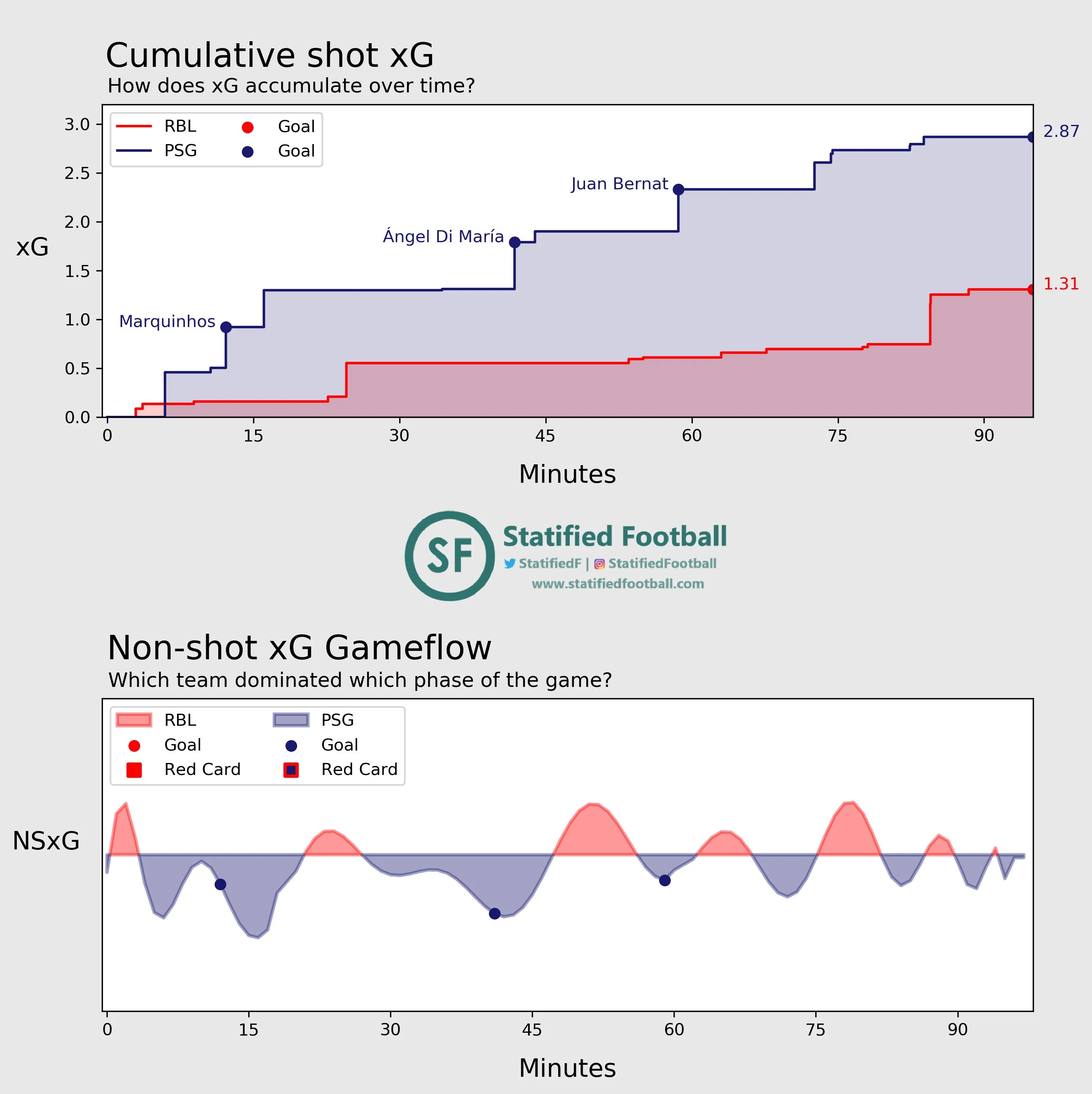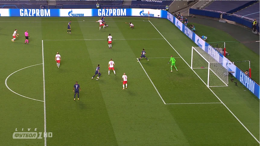 Париж виявився набагато гнучкішим за Атлетіко, з яким РБ Лейпциг мав справу у чвертьфіналі. В першому таймі Тухелю вдалося нейтралізувати центр поля німців – так, Паредес опускався глибоко, допомагаючи захисникам, і таким же чином маніпулював рухами Забітцера, залишаючи карман за спиною австрійця для вільних дій Неймара. Еррера грамотно піднімався й працював між лінями, а Ді Марія блукав у широких позиціях, спускався в глибину і навіть страхував Керера (у обох по 6 повернень м'яча). Таким чином, модель ПСЖ була універсальною, однаково корисно працюючи як на оборону, так і на атаку.