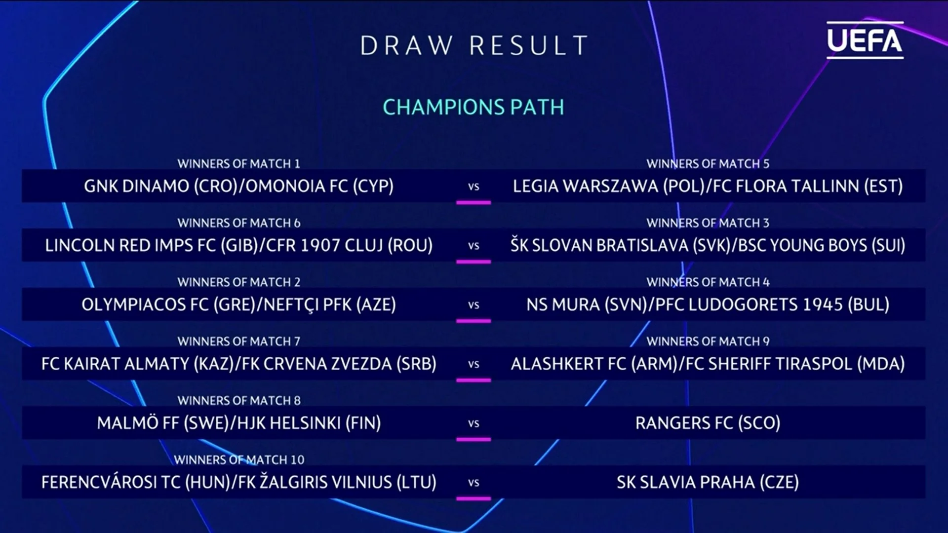 Динамо Загреб (CRO)/Омонія (CYP) – Легія (POL)/Флора (EST)