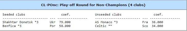 Якщо Шахтар подолає третій раунд, то теж буде сіяним. Там же опиниться і лісабонська Бенфіка, якщо пройде першого суперника. Дві команди з нижчим рейтингом, які подолають третій раунд, будуть несіяними – одна з них і стане суперником "помаранчево-чорних". Список "кандидатів" той самий, що і в попередньому раунді – нових імен вже не з'явиться. Ну, хіба що може випасти ще й доволі грізний Монако (третя команда Франції), але для цього необхідний збіг обставин. Перша – поразка МЮ у фіналі ЛЄ. Друга – прохід команди Ковача у третьому раунді кваліфікації.