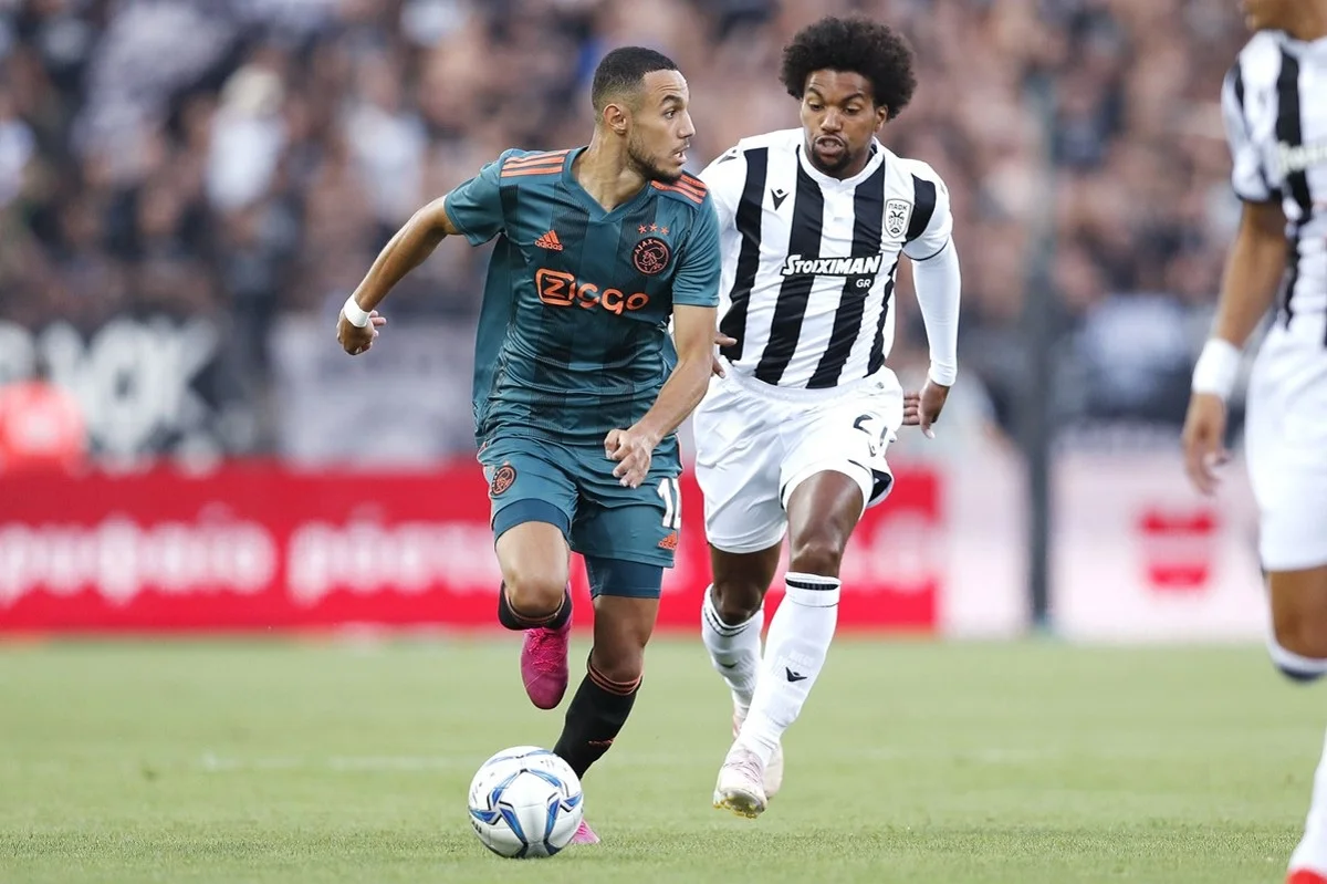 Чинний півфіналіст Ліги чемпіонів Аякс приїхав у гості до чемпіона Греції ПАОКА. Нідерландці активніше розпочали та вже на 10-й хвилині вийшли вперед, коли Хакім Зієш розкішно пробив зі штрафного – гострий кут не завадив.