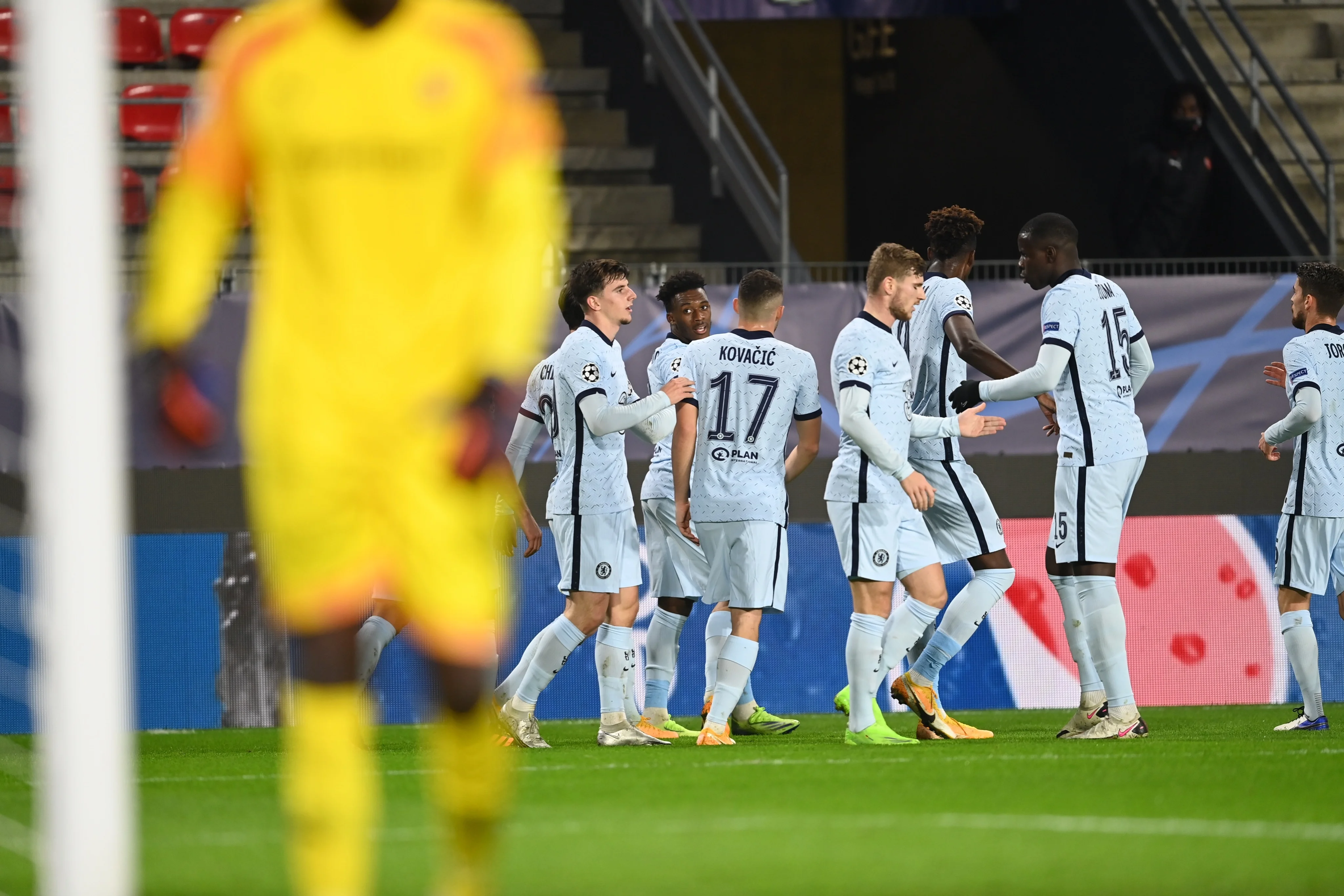 Челсі прибув до Франції з наміром достроково оформити вихід у плей-офф турніру. "Пенсіонери" з перших хвилин взяли м'яч під контроль, проте нагнітання небезпеки поблизу володінь Гоміса довго не давало результат. Зокрема, міг забивати Вернер, але з кількох метрів пробив над воротами. Зате гол лондонці створили фактично з нічого: Маунт відібрав м'яч неподалік свого штрафного й розкішною передачею на півполя вивів Каллума Хадсона-Одоя на побачення з воротарем і той відкрив рахунок. Надалі хлопці Лемпарда створили чимало нагод, щоб закріпити власну перевагу, та знову підвела реалізація. А під завісу поєдинку Челсі взагалі проґавив Сехру Гірассі – Буріжо подав кутовий, а потужний форвард головою вгатив м'яч під перекладину! Рятувати "синіх" взявся Олів'є Жиру. Після невдало реалізованого "буліту" Вернером чемпіон світу виявився найспритнішим на добиванні – 3 очки та місце в 1/8 фіналу для Челсі.