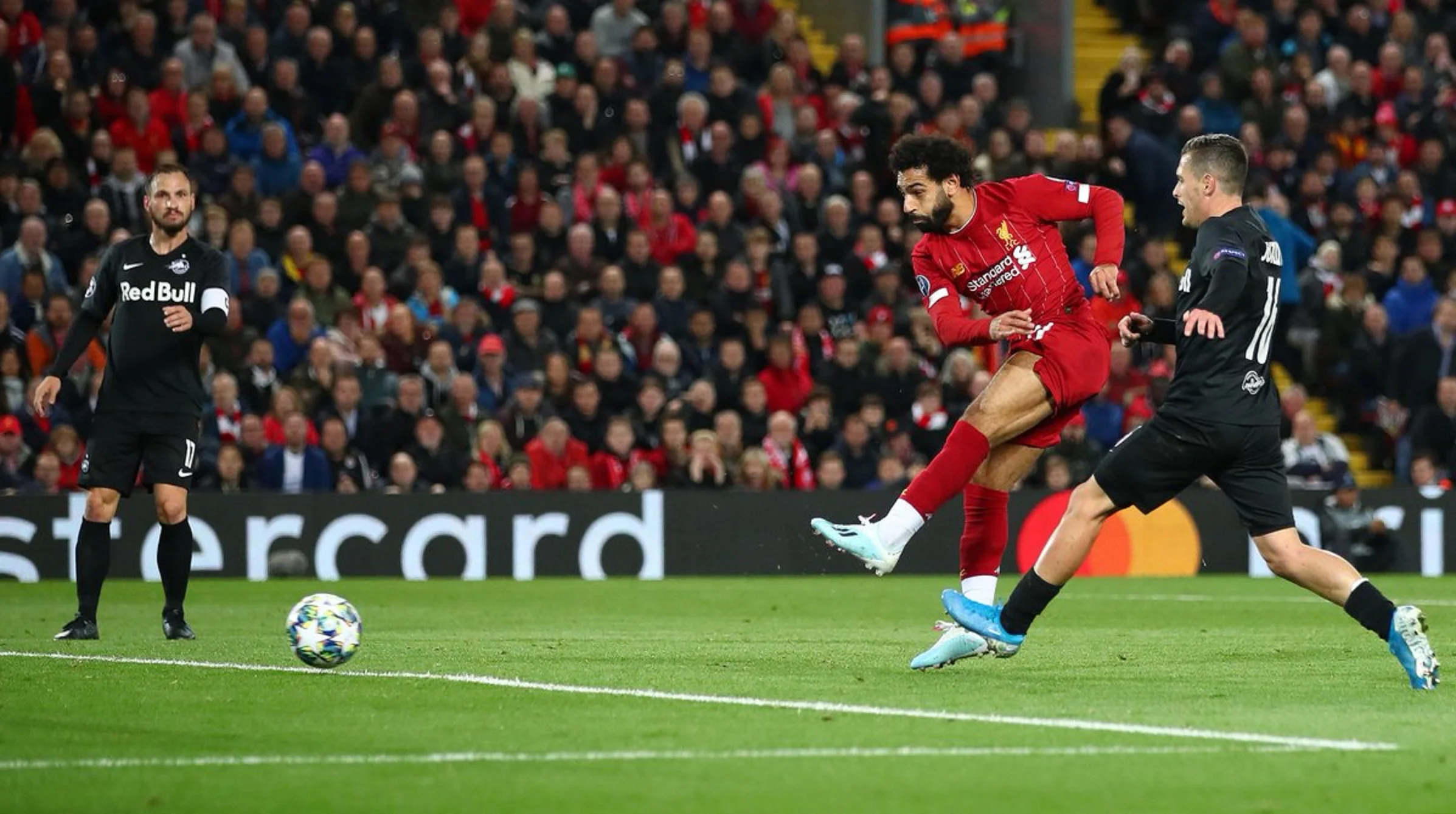 Ліверпуль забив три голи за 36 хвилин і вбив будь-які інтриги у цьому матчі, але гравці Зальцбурга не здавались. Ще до перерви гостям вдалось зрівняти рахунок. У другому таймі австрійцям вдалось скоротити відрив до мінімуму, а на 60-й хвилині вундеркінд гостей Ерлінг Холанд зрівняв рахунок, змусивши шаленіти своїх вболівальників. Але клас таки дався знаки, Салах заключним голом подарував перемогу чинному тріумфатору турніру.
