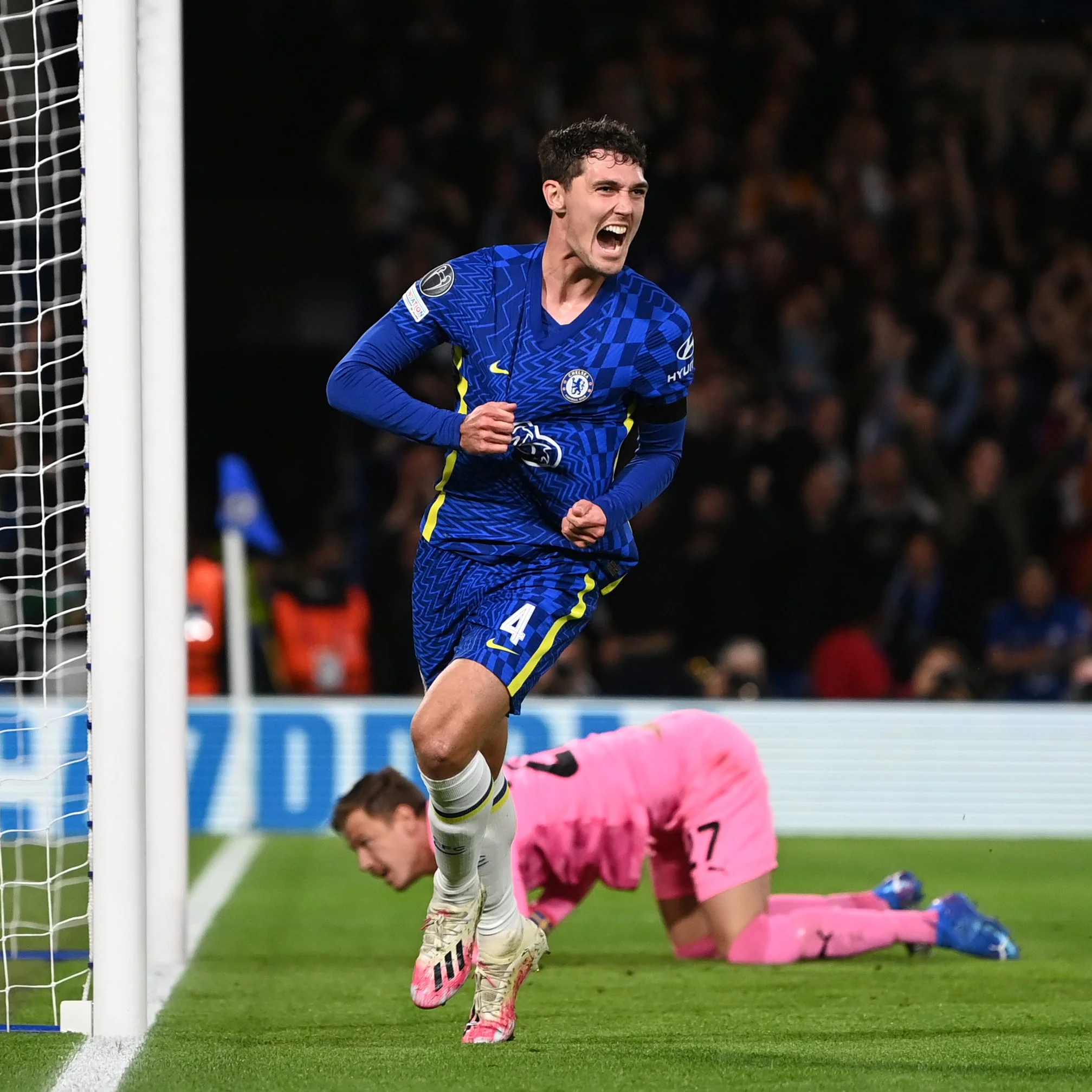 У паралельному матчі квартету Челсі під лондонською зливою екзаменував Мальме. Шведи йшли останніми з нулем очок, а чинні переможці ЛЧ мали 3 пункти і посідали другу позицію після двох турів. Дуже швидко команда Тухеля оформила комфортну перевагу – спершу Крістенсен ударом з льоту відкрив рахунок,забивши свій дебютний гол за "синіх". Жоржінью з пенальті, призначений за фол проти Лукаку, забив другий гол. У тому ж епізоді Ромелу отримав травму і не зміг продовжити гру. Замість нього вийшов Кай Хаверц, який ще до перерви міг забити, але змарнував свій шанс. Під завісу тайму пошкодження отримав ще й Тімо Вернер, який теж залишив поле.