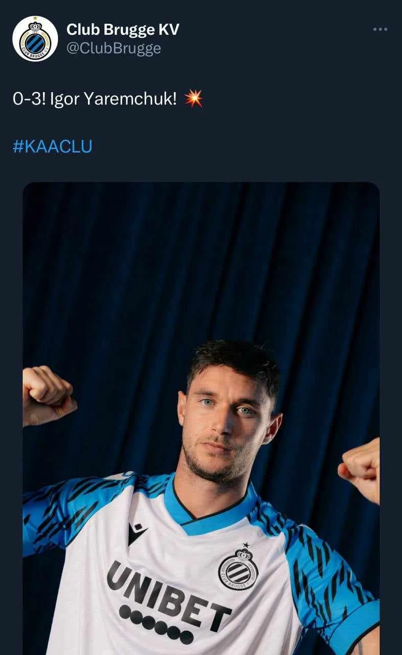 Відбулись матчі-відповіді третього кваліфікаційного раунду Ліги конференцій. Бельгійський Брюгге не залишив шансів ісландському КА – Роман Яремчук оформив блискавичний хет-трик, яким затьмарив голову навіть працівникам прес-служби клубу. Офіційний twitter-акаунт клубу назвав Романа Ігорем.