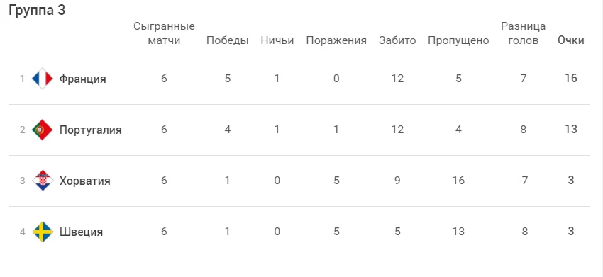 Хорвати не склали зброю і відновили паритет завдяки шикарному голу Ковачіча, який смачно приклався з лінії карного. І все ж фінальну крапку поставив Діаш, скориставшись помилкою кіпера – 2:3. Команда Даліча набирає стільки ж очок як і шведи (3), але фінішує вище за додатковими показниками. До слова, Роналду провів на полі усі 90 з лишком хвилин, але цього разу жодними результативними діями не відзначився... лише жовта за симуляцію.
