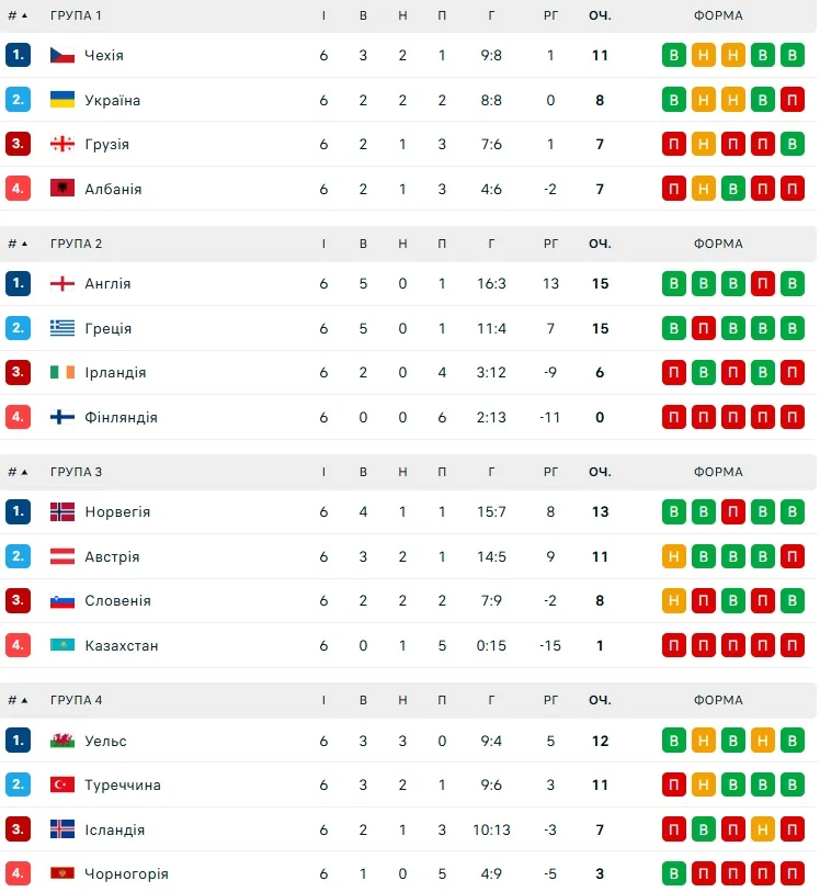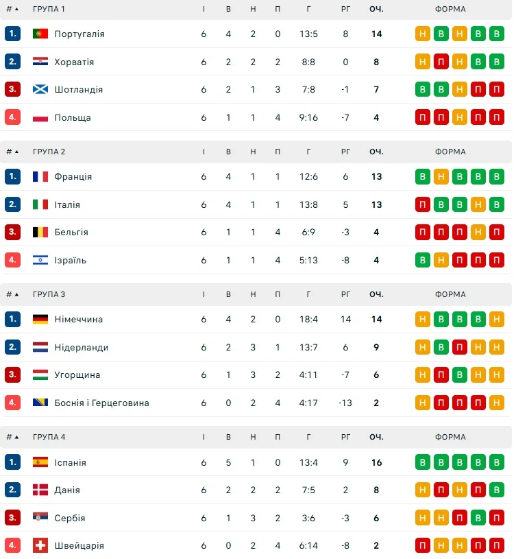 Завершився груповий етап Ліги націй 2024/25. "Футбол 24" знайомить із ситуацією, яка склалася в турнірній таблиці та розкриває місце збірної України.