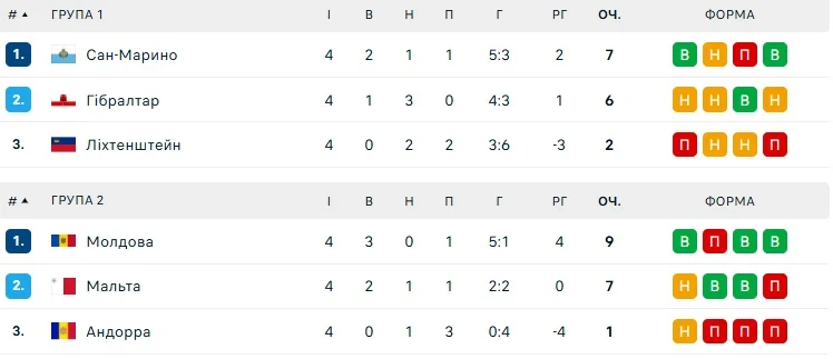 Історичним досягненням відзначилася збірна Сан-Маріно, яка разом з Молдовою йде на підвищення. Гібралтар і Мальта можуть скласти їм компанію, якщо виграють перехідні матчі. Ліхтенштейн і Андорра – найслабші команди сезону.