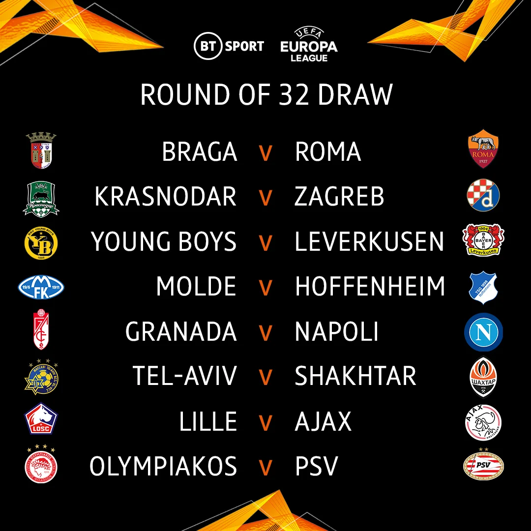 Нагадаємо, клуби з України та Росії не могли зустрітися між собою. Команди, які грали в одній групі чи представляють ту саму асоціацію, також розвели рішенням УЄФА. Сіяні команди отримали і ту перевагу, що гратимуть матч-відповідь на своєму полі. Двобої 1/16 фіналу Ліги Європи відбудуться 18 і 25 лютого 2021 року о традиційній порі (19:55 та 22:00 за київським часом). Жеребкування 1/8 заплановане на 26 лютого.