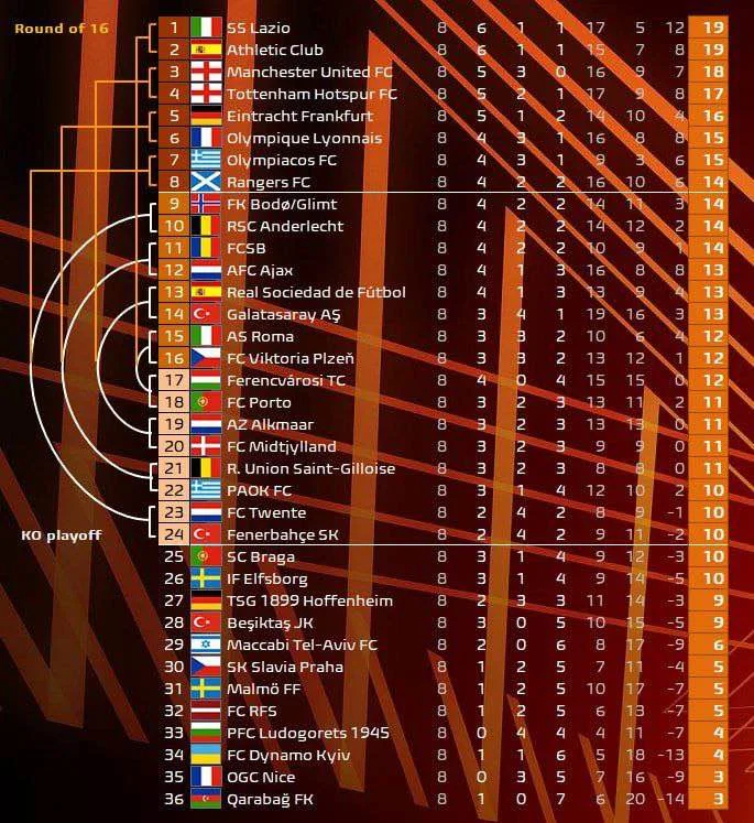 А ось Буде-Глімт, Андерлехт, ФКСБ, Аякс, Реал Сосьєдад, Галатасарай, Рома, Вікторія, Ференцварош, Порту, АЗ, Мідтьюлланд, Уніон Сент-Жілуаз, ПАОК, Твенте і Фенербахче будуть змушені брати участь у плей-офф, щоб продовжити боротися за перемогу в турнірі.