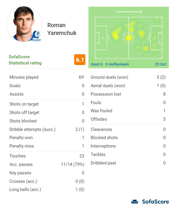 Нереалізований пенальті: Яремчук, 14