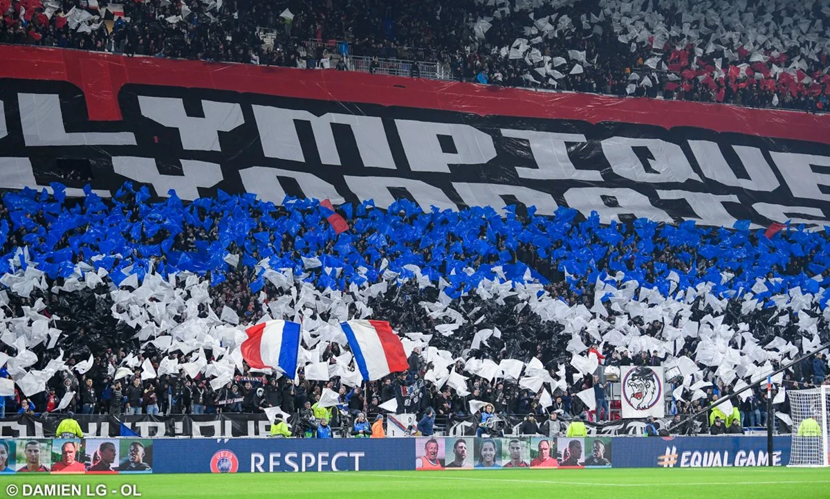 На Стад де Люм'єр проходить перша зустріч Ліона та Ювентуса в рамках 1/8 фіналу Ліги чемпіонів. Перед початком матчу фанати господарів продемонстрували ефектний перфоманс – розфарбували домашню арену в червоно-сині кольори за допомогою табличок. На центральній трибуні з'явився напис OL (Olimpique Lyonnais, – прим).