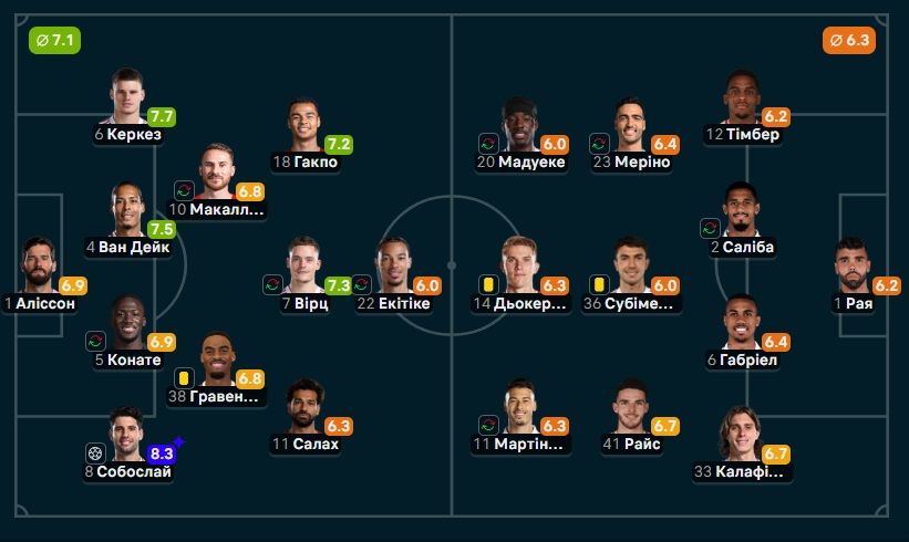 Зрештою, вже на 5-й хвилині матчу з Ліверпулем лондонці втратили Салібу. Вільям банально оступився й підвернув ногу. І ось тепер капризній фан-базі "гармашів" стало зрозуміло, навіщо літом підписували позиції залізобетонних лідерів, витративши гроші на Мадуеке й Москеру. Едегора прогнозовано замінив Меріно.
