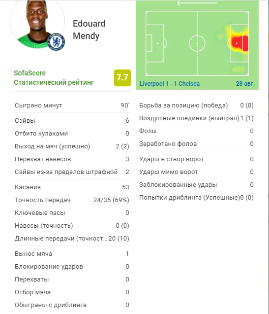 Так, Челсі героїчно захищався, а Ліверпуль не продемонстрував чогось екстраординарного, що зламало б таки оборону "синіх" вдруге. Проте як тут не відзначити перформанс Едуара Менді? У другому таймі сенегальський голкіпер мінімум п’ять разів серйозно рятував після ударів суперника, впевнено діяв на виходах та й загалом вселяв додаткову впевненість у своїх партнерів. Статистичний портал WhoScored визнав його гравцем матчу (7,6 балів). Інший ресурс – SofaScore – віддав перевагу Александеру-Арнольду, щоправда й перед Менді скинув капелюха – найкращий у складі Челсі.
