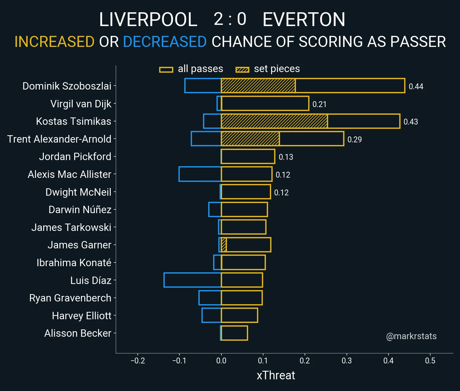 Після перерви 84% контролю за Ліверпулем. Миколенко й тут грає впевнено і не дає розвернутися Салаху. Однак на 88 хвилини українця міняє форвард Черміті. Після цього Елліот класно приклався метрів з 25 – Пікфорд перевів у поперечку. Суддя компенсував одразу 9 хвилин. Жота протягнув ліворуч, накрутив двох опонентів, але дав у зовнішню сітку. Салах запоров розкішну контратаку після кутового "ірисок". І все ж на 90+8 після ще одного стандарта на чужій половині Евертон провалився. Дарвін протягнув і покотив, а Салах реалізував. За відсутності Миколенка це було дуже легко.