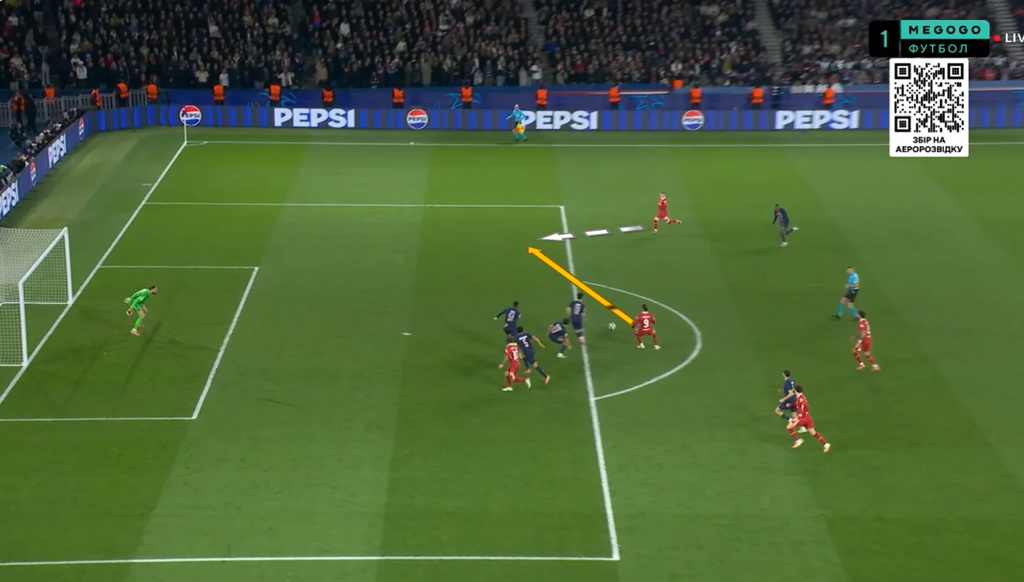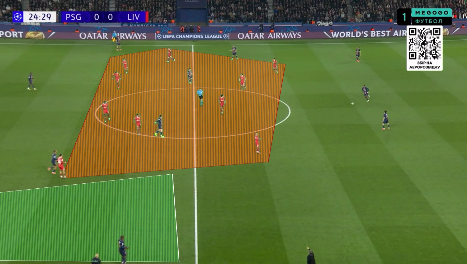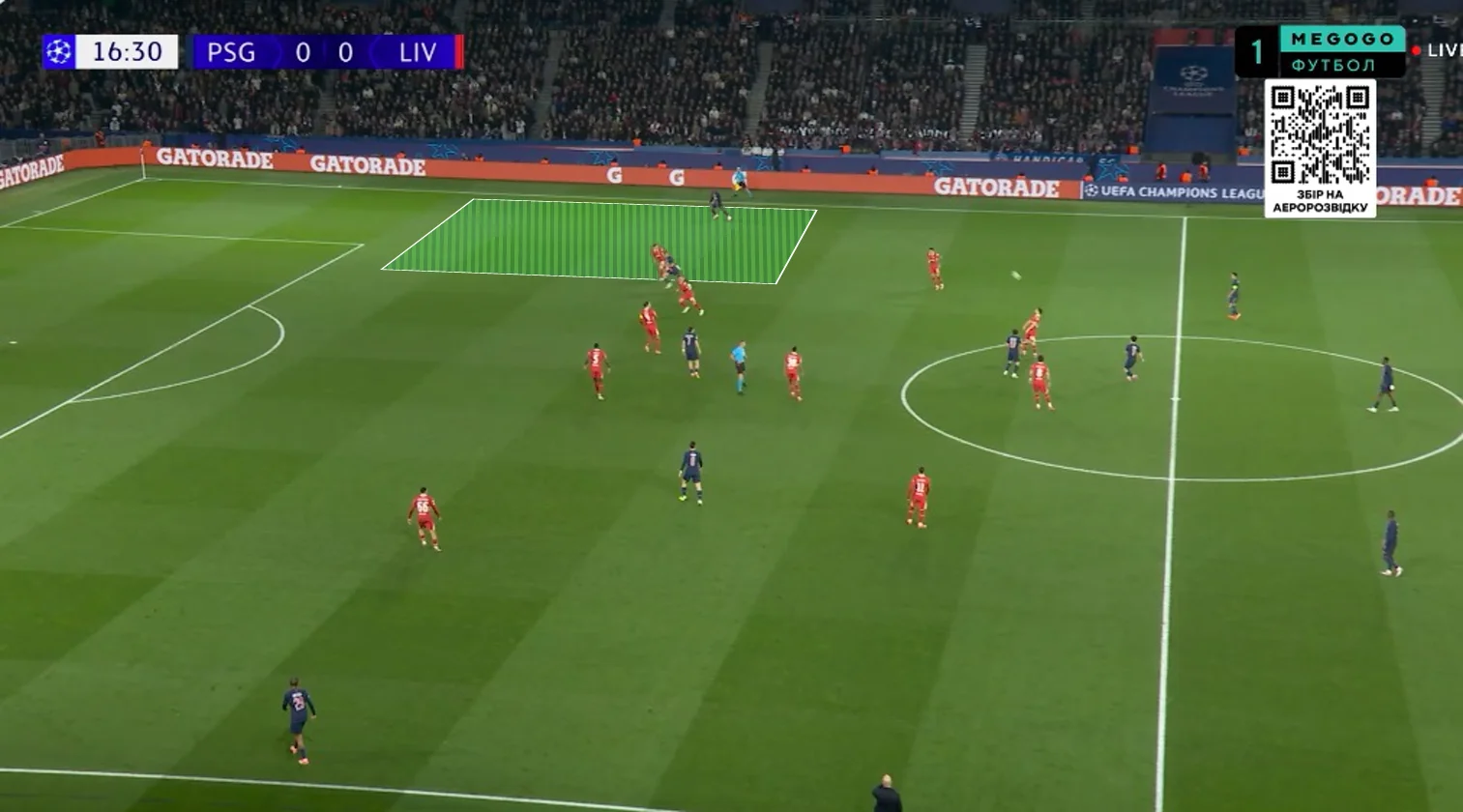 Ще наприкінці першого тайму Ліверпуль став сідати нижче. При відкритих м'ячах оборона мерсисайдців почала розвертатись назад, тож виходи сам на сам після закидань від центрбеків ПСЖ зникли. У другому таймі Арне Слот спробував додати більше персоналок в обороні, але глобально нічого не змінилось – замін не було, а стратегія мерсисайдців крутилась навколо надії на виживання.