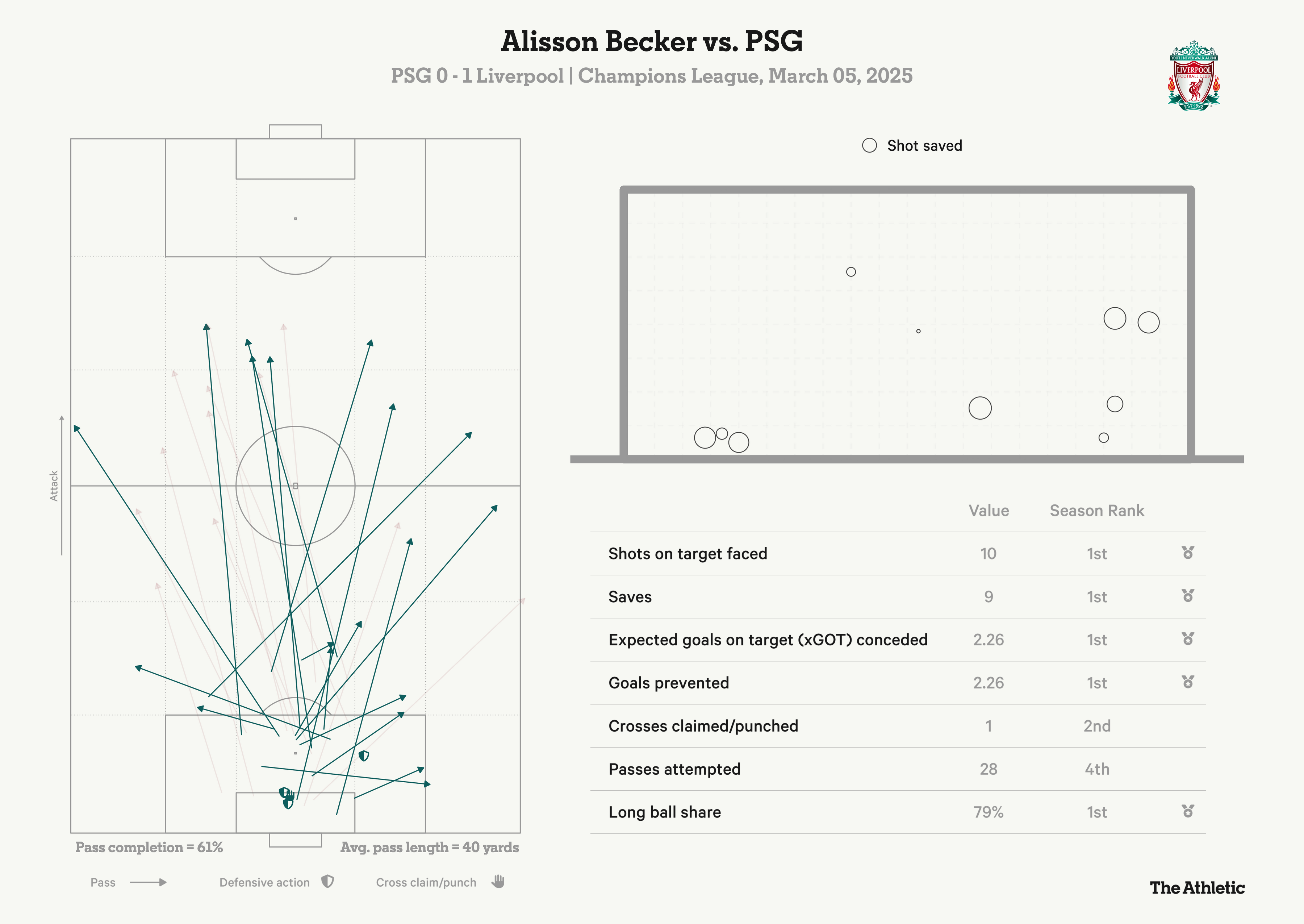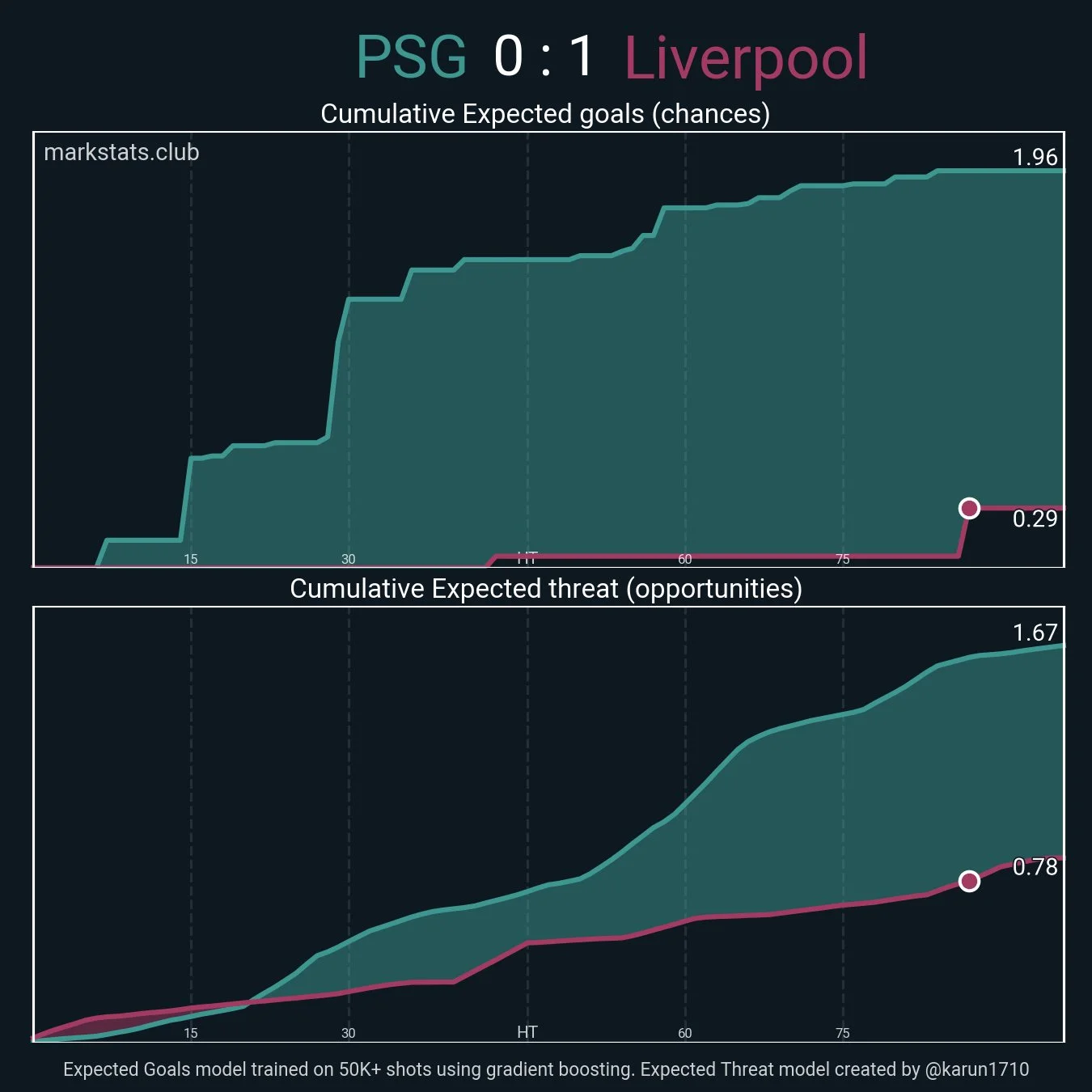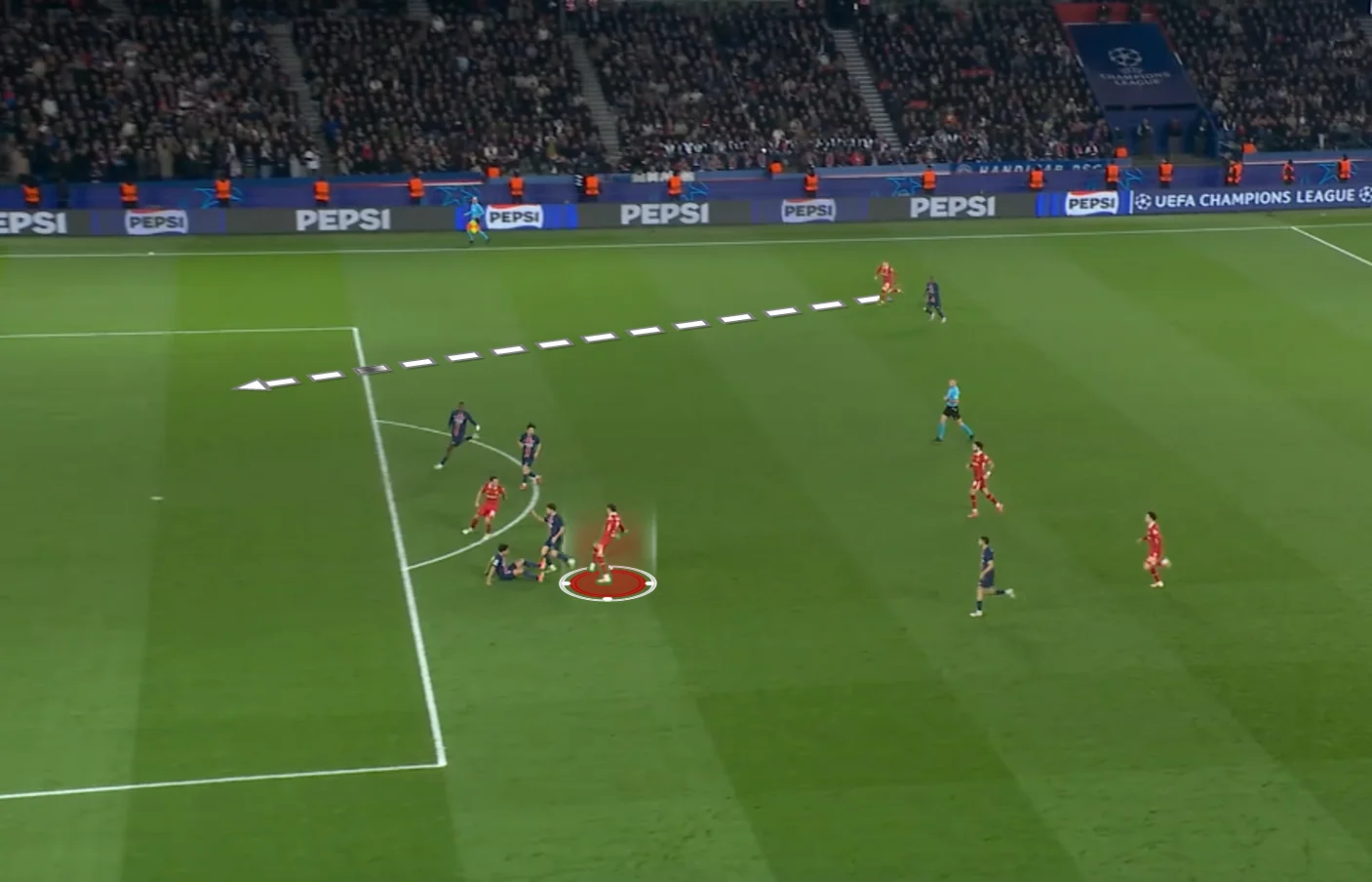 Ще наприкінці першого тайму Ліверпуль став сідати нижче. При відкритих м'ячах оборона мерсисайдців почала розвертатись назад, тож виходи сам на сам після закидань від центрбеків ПСЖ зникли. У другому таймі Арне Слот спробував додати більше персоналок в обороні, але глобально нічого не змінилось – замін не було, а стратегія мерсисайдців крутилась навколо надії на виживання.