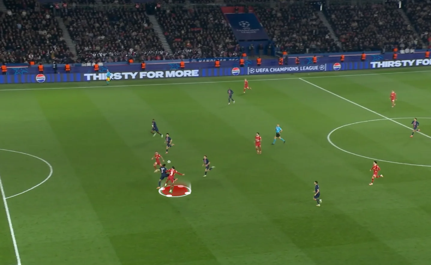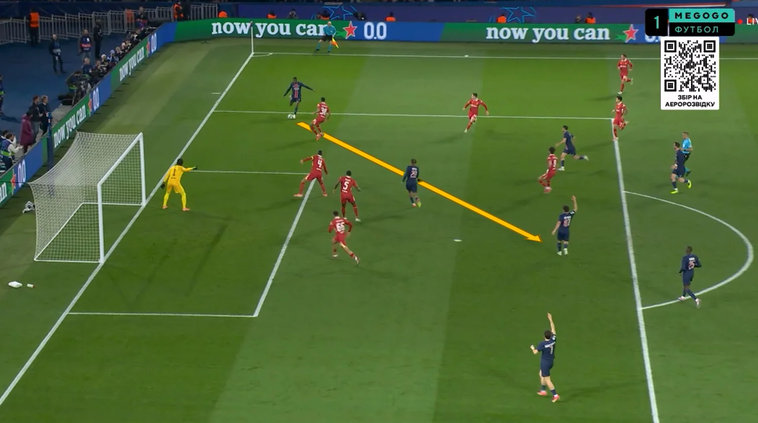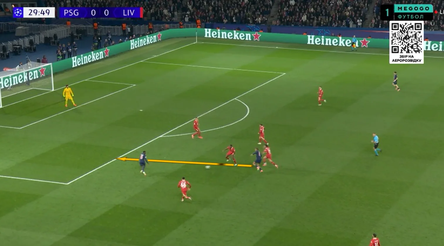Але не тільки так парижани реалізовували індивідуальну перевагу. Французи ще й чинили високий пресинг та давали шалену інтенсивність після втрат на чужій половині. Пресинг не був аж надто складним, але загальна активність змушувала Ліверпуль частіше виходити з оборони через лонгболи – а там вже у єдиноборства вступали потужні захисники ПСЖ.