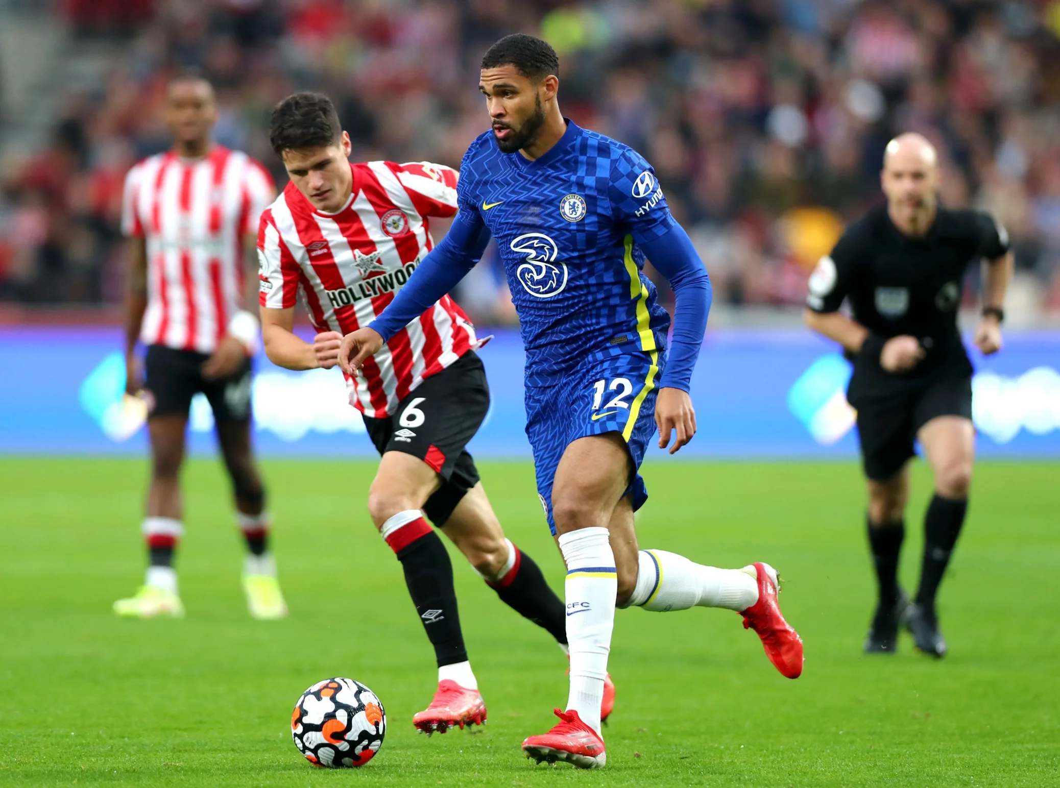 Програму дня закривав домашній матч Брентфорда проти Челсі. В разі перемоги лондонці вийшли б на першу позицію, але й господарі мали шанс зачепитись за топ-4. На легку прогулянку "аристократи" не мали розраховувати – і господарі підтвердили очікування, граючи на рівних проти чемпіона Європи. На 22-й хвилині вони навіть могли вийти вперед у рахунку, однак Мбеумо з близької дистанції влучив у стійку. Підопічні Томаса Тухеля одразу відповіли голом Лукаку, який не зарахували через офсайд, і запороли ще кілька перспективних атак.