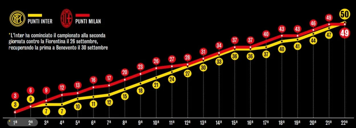 У наступному турі на Інтер чекає міланське дербі. Важливий іспит, щоб задекларувати свої чемпіонські амбіції. Антоніо Конте вже вилетів із Ліги чемпіонів та Кубка. Залишився єдиний шанс на титул і, очевидно, збереження місця роботи. Про шанси Інтера на Скудетто, поки говорять упівголоса, але статистика лише додає оптимізму. Поточний лідер успішно грає не лише з аутсайдерами, але й з командами із верхньої частини таблиці. "Нерадзуррі" в середньому набирають 2 очки проти сильних суперників, тоді як у Мілана та Ювентуса цей показник скромніший – 1, 75 та 1, 44 відповідно. І наостанок трішки конспірології: у нинішньому сезоні Інтер виграв 9 із перших 11 домашніх матчів. Попереднього разу (кампанія-2009/10) команда виграла Серію А.