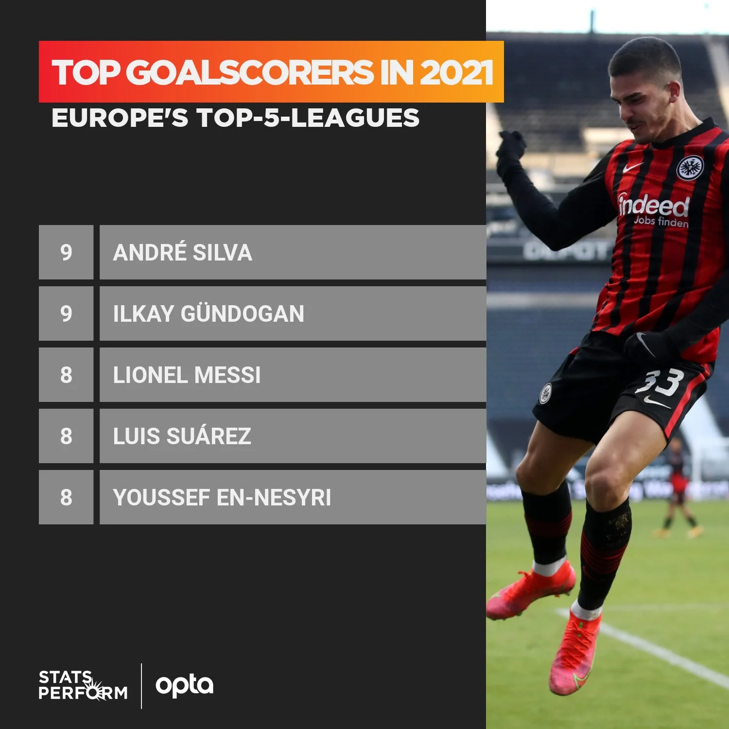 Серед конкурентів Баварії перемоги здобули лише РБ Лейпциг та Айнтрахт. Хоча "орлів" такими можна називати лише номінально. 9 очок відставання – це дуже серйозно. Продовжує радувати Адді Хютера його головний форвард. І це не повернений із Реала Лука Йовіч. Андре Сілва після Нового року – просто монстр. Португалець забив уже 9 голів. Разом із Гюндоганом це найкращий показник у європейській топ-п'ятірці.
