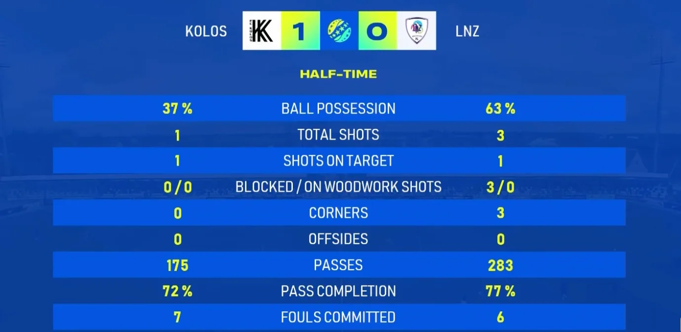У другому таймі обидві команди прагнули діяти попереду, однак атакам бракувало гостроти та завершального акценту. Моменти біля воріт виникали рідко, а більшість підходів завершувалася без реальної загрози.