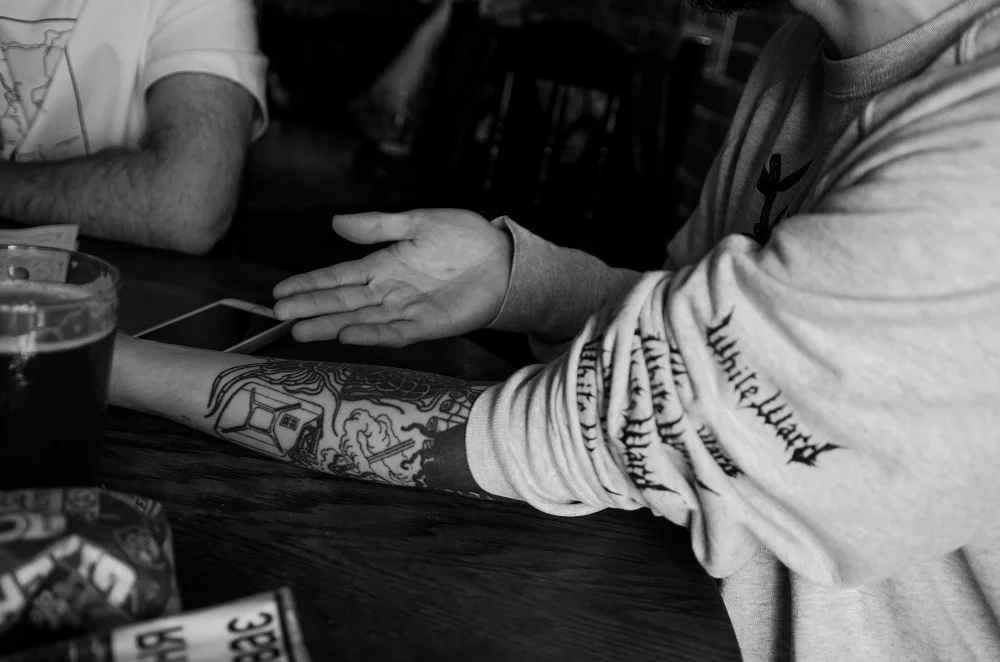 А татухи – то взагалі окрема комічна історія. Коли мені було 18, я дуже хотів татуху і зробив її втіхаря. Ходив із опущеним рукавом, аж батя запідозрив, що я наркоман – і знайшов у мене татуху замість дірок. Дуже схарився. І коли з’являлися наступні – я їх дуже активно ховав, він все одно знаходив. Розчарування, знову тиждень не спілкуємося. А потім я переїхав на окрему квартиру і почав "забиватись", знаходилися нові ідеї. Кожен малюнок для мене повинен щось означати. До батька досі приходжу в кофтах або сорочках із довгим рукавом (Усміхається).