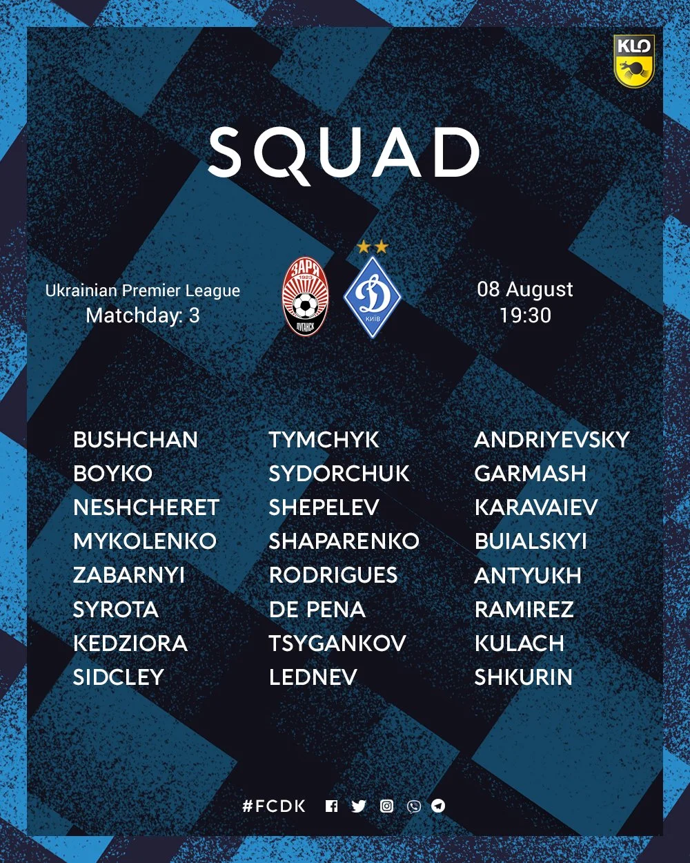 Як повідомляє прес-служба киян, на цей матч вирушили 24 футболісти "біло-синіх". Серед них знайшлось місце одразу чотирьом літнім новачкам – півзахиснику Денису Антюху і форвардам Іллі Шкуріну, Еріку Раміресу й Владиславу Кулачу.