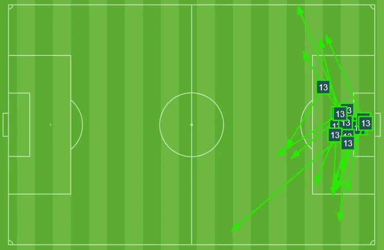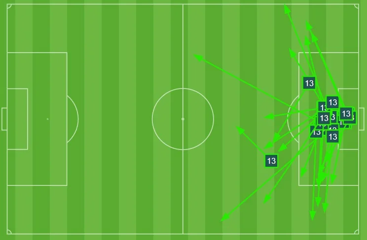 Карта пасів Луніна у першому таймі