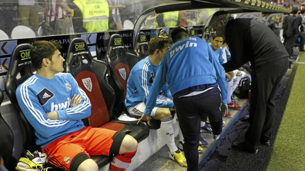 Сезон 2012/13 при королівському дворі відзначився конфліктом епатажного головного тренера та багаторічного стража воріт. У свій останній рік у Реалі Моурінью вирішив, що причиною всіх бід є Касільяс. Ікер, починаючи з матчу проти Малаги, надовго присів на лаву запасних, а своїм моментом слави несподівано скористався Антоніо Адан. Ситуація досягнула рівня вибухової напруженості. Касільяс іноді повертався у ворота, але після травми руки та приходу Дієго Лопеса позбувся свого місця аж до відставки Моурінью.