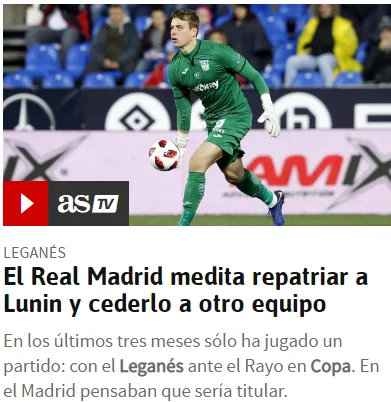 За два місяці до відкриття трансферного вікна королівський клуб спробує підшукати Луніну нову команду, яка б надала Реалу гарантії регулярної ігрової практики для екс-голкіпера луганської Зорі.