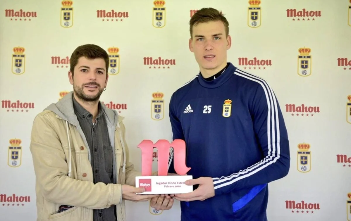Андрій Лунін з нагородою для гравця місяця в Ов'єдо