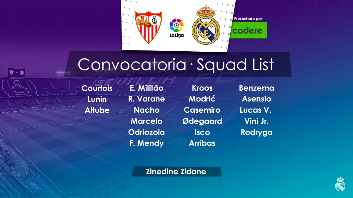 Андрій Лунін вже звично опинився серед трьох воротарів команди. Натомість Серхіо Рамос до заявки не потрапив. Капітан "вершкових" близький до повного відновлення від травми, але ним поки не ризикують.