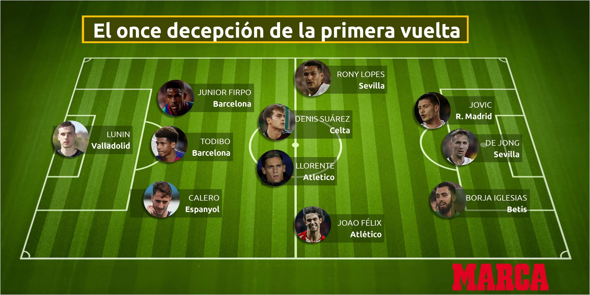 Іспанська газета "Marca" презентувала символічну збірну розчарувань першої половини сезону чемпіонату Іспанії.