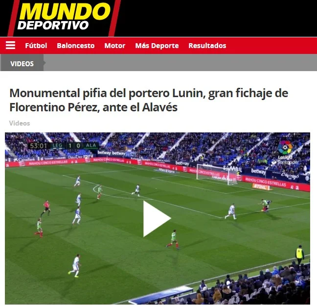 Каталонський ресурс Mundo Deportivo не упустив шансу потролити Реал: "Монументальна помилка воротаря Луніна – великого підписання Флорентіно Переса".