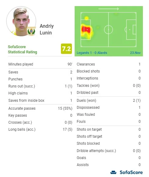 Статистичний портал SofaScore виставив Луніну середню оцінку в команді переможців – 7.2. Лише 3 гравці Леганеса отримали більше. Авторитетний WhoScored виставив схожі бали, але на порядок нижчі. Тут українець отримав тільки 6.9.