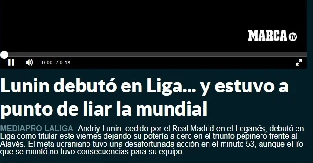 Marca запостила відеоновину з цим епізодом, підписавши її так – "Лунін дебютував у Ла Лізі без пропущеного м'яча... але був близьким до того, щоб сконфузитися на весь світ".