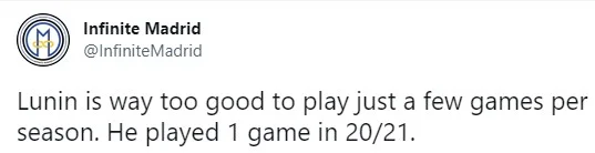 "Лунін надто вже хороший, щоб грати лише кілька ігор за сезон".