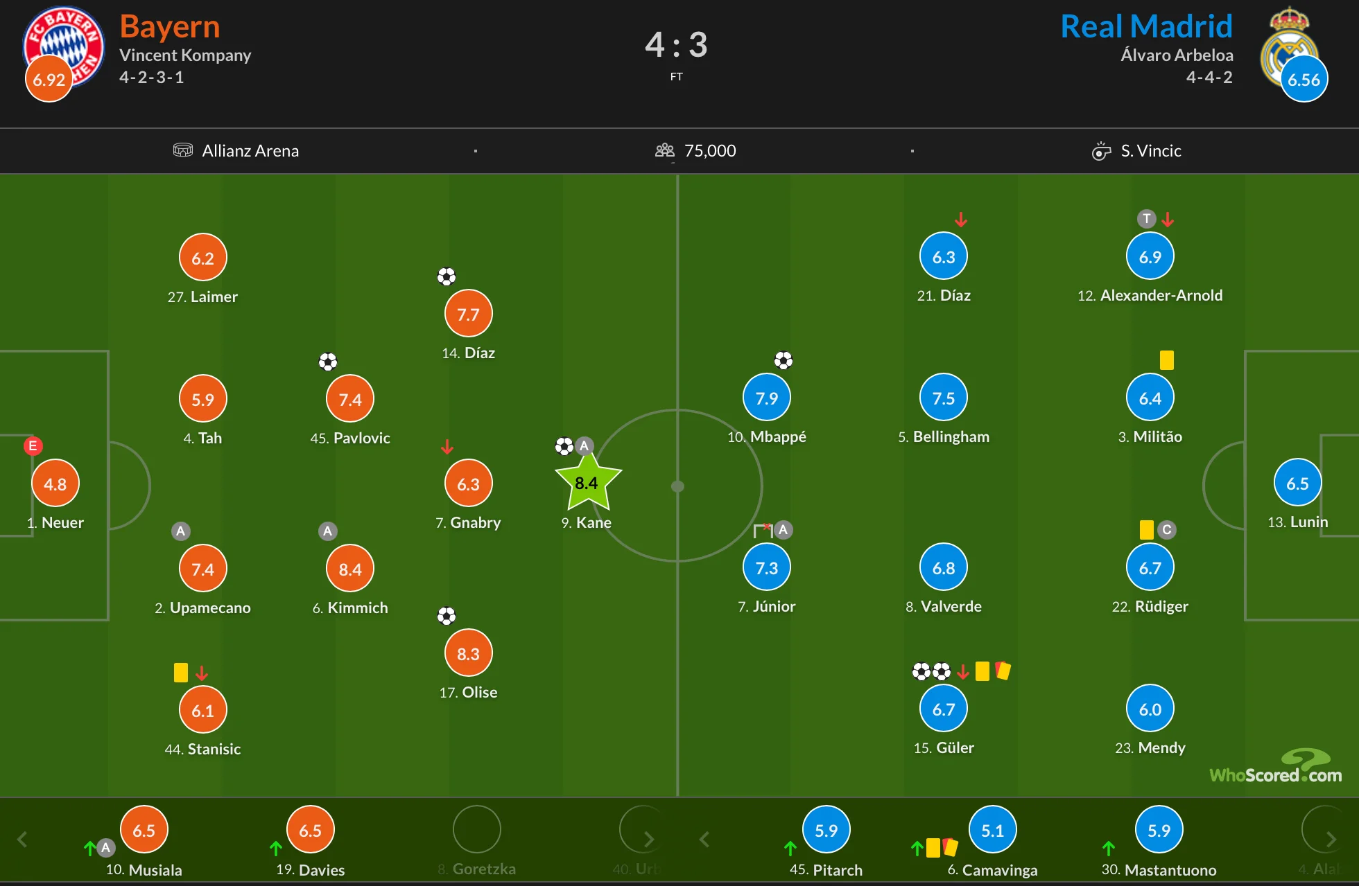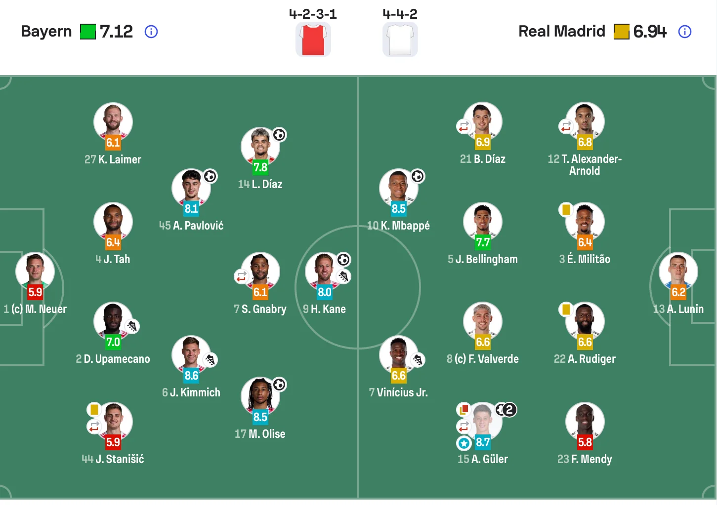 Український голкіпер відіграв усі 90 хвилин і отримав стримані оцінки від аналітичних платформ. WhoScored оцінив його виступ у 6,5 бала – третій найнижчий показник у складі "вершкових". Sofascore поставив 6,2, що стало другим найгіршим результатом серед гравців Реала. Аналогічну оцінку Луніну виставив і матч-центр Футбол 24, де цей показник виявився найнижчим у команді.