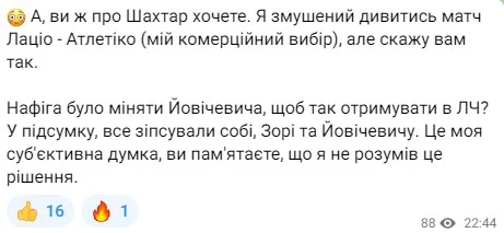 Данило Вереітін (тг-канал "Рахунок на табло") підтримує тезу щодо Йовічевіча.