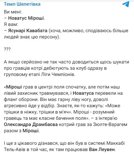 Автор телеграм-каналу "Темп Шепетівка" пройшовся екзотичним дебютантом.