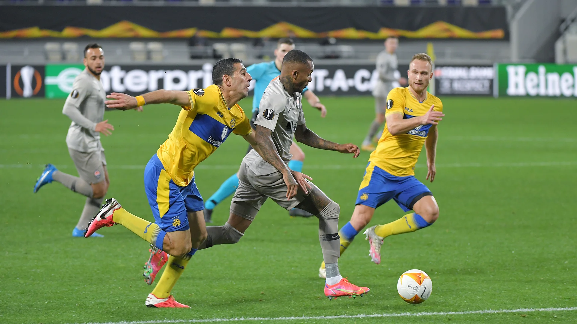 Втім, ближче до фінального свистка вони почали розкриватись, а свіжі "гірники" – ловили суперника на контратаках. Так, Фернандо, з'явившись на полі на 89-й хвилині, прорвався через двох захисників та вийшов віч-на-віч з Даніелем. Відважний голкіпер врятував Маккабі, але на 90+3-й Фернандо зібрав на собі останніх суперників перед штрафним і викотив пас під удар Тете. Бразилець спокійно переграв Даніеля, встановивши остаточний рахунок зустрічі – 2:0!