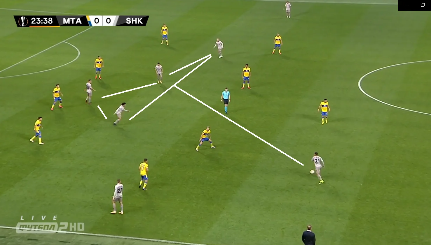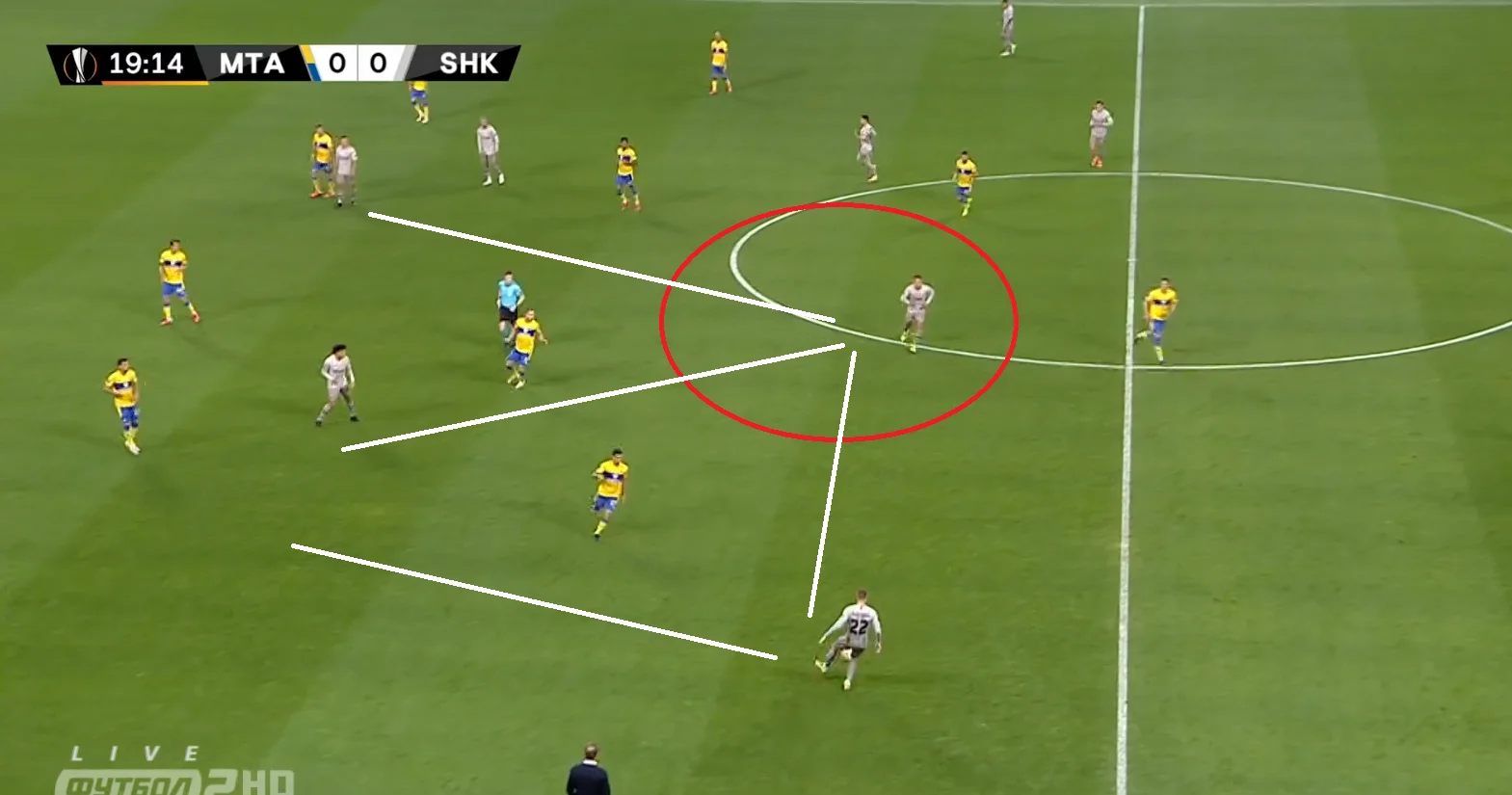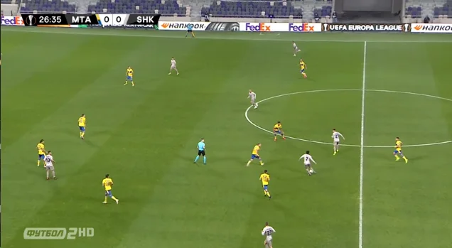 Знову перевага Шахтаря на старті атаки завдяки величезній відкритій зоні у центрі. Знову відкриті канали для передач між лініями та варіанти для обіграшу.