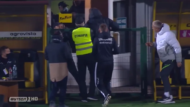 Сергій Лактіонов, який працює асистентом Юрія Гури, почав щось гучно доводити арбітрам і Юрію Максимову. Якщо судді змогли стримати свої емоції, то наставник Ворскли побіг особисто з'ясувати стосунки з опонентом і навіть замахнувся на того кулаком. Максимова негайно вилучили, але й це не допомогло вгамувати 52-річного фахівця. Головний тренер Ворскли побіг за Лактіоновим, який завбачливо відійшов у підтрибунне приміщення, уникнувши самосуду.