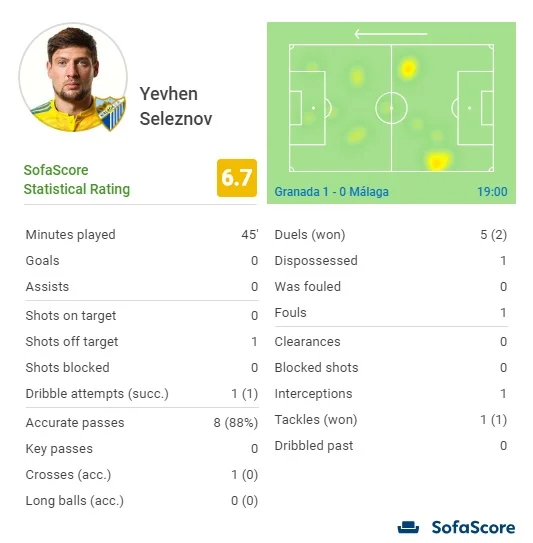 Малага з Селезньовим програла Гранаді – українець отримав середній бал у команді