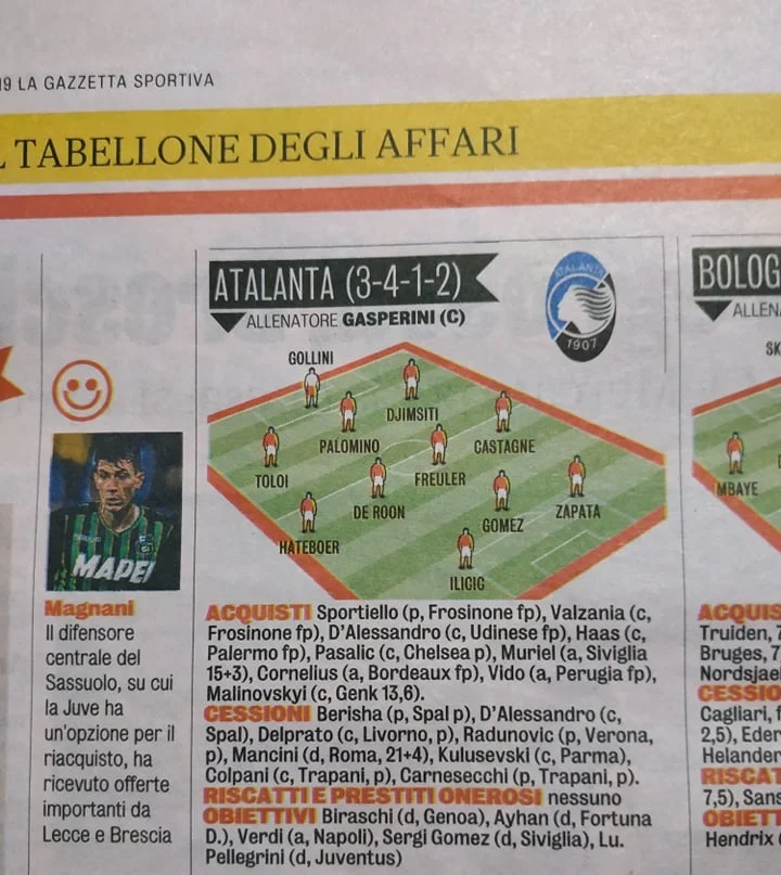 La Gazzetta dello Sport назвала орієнтовні стартові склади усіх команд Серії А у сезоні 2019/20.
