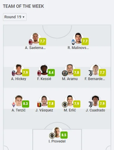 Символічна збірна 19-го туру чемпіонату Італії від Sofa Score: