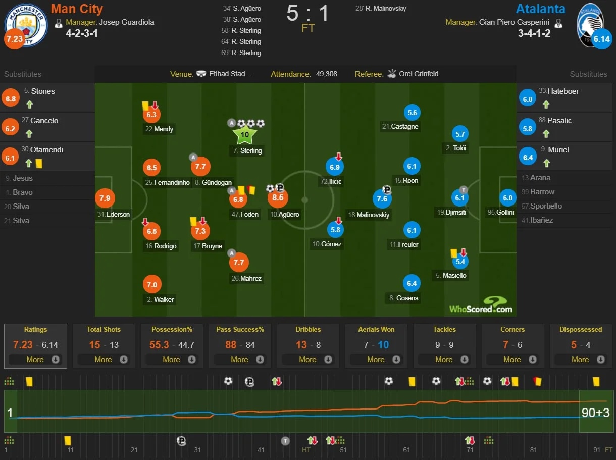 Гравець збірної України Руслан Маліновський став найкращим гравцем своєї команди у матчі 3-го туру Ліги чемпіонів Аталанта – Манчестер Сіті за версією авторитетного аналітичного порталу Whoscored. Українець набрав 7,6 бала, в той час як у найближчого переслідувача форварда Ілічіча – 6,9 бала.