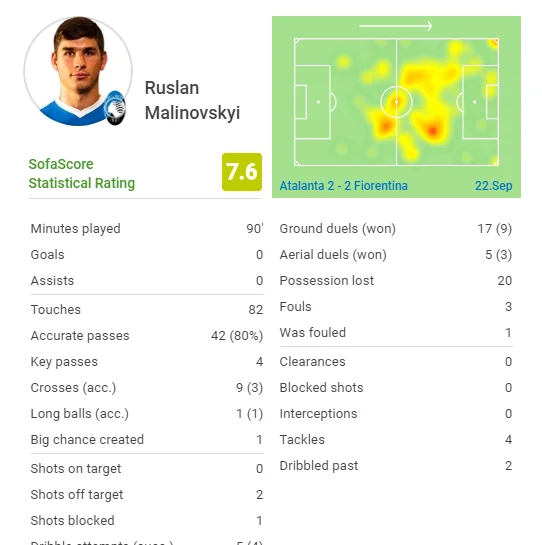 Руслан Маліновський зробив це вдруге за тиждень. За матч Аталанта – Фіорентина гравець збірної України отримав високі оцінки статистичних порталів та італійських ЗМІ.